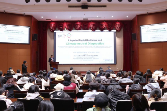 Tiwari教授系统阐述了以“集成式数字医疗与气候中和治理”为核心的发展路径,提出通过智能诊断、数字化平台与低碳临床路径的创新融合,实现医疗流程的绿色重塑。他深入剖析了智能传感、可穿戴设备与环境友好型诊断系统的协同创新机制,展示了多项前沿研究成果在疾病早期预警与可持续医疗中的应用潜力,引发在场师生对绿色科技与健康未来深度融合的深刻思考。